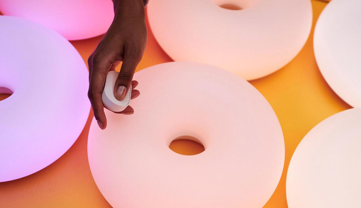 Cette surface mate permet à la lumière de rayonner depuis l’intérieur plutôt que de rebondir sur l’extérieur. Résultat : la lampe peut maintenant afficher un spectre entier de couleurs, du blanc froid au rouge chaud, en passant par le rose poudré, le lavande, le turquoise et l’ambre.